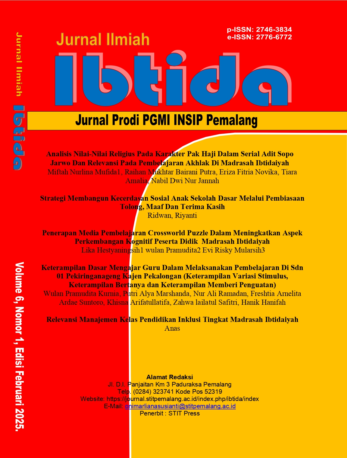 Ibtida adalah jurnal ilmiah yang diterbitkan oleh Program Studi Pendidikan Guru Madrasah Ibtidaiyah (PGMI) STIT Pemalang, yang memiliki fokus kajian tentang pendidikan dan pengembangan guru khususnya pada jenjang MI/SD. Pada masing-masing edisi yang diterbitkan dua kali dalam satu tahun, diangkat tema-tema kajian yang berbeda sesuai dengan isu-isu yang dikembangkan. Jurnal ini sebagai sarana pengembangan Prodi PGMI dan publikasi karya ilmiah dosen dan guru serta pemerhati pendidikan, melalui pengembangan ilmu pengetahuan dan teknologi dalam bidang pendidikan, penelitian dan pengabdian kepada masyarakat yang mengacu pada pola pengembangan ilmiah. Ibtida terbit pada Edisi Februari dan Agustus setiap tahunnya, di mana masing-masing terbitan dimuat 5 (lima) artikel ilmiah.